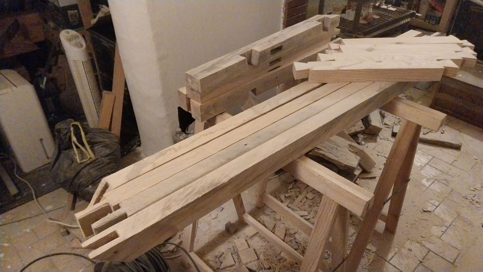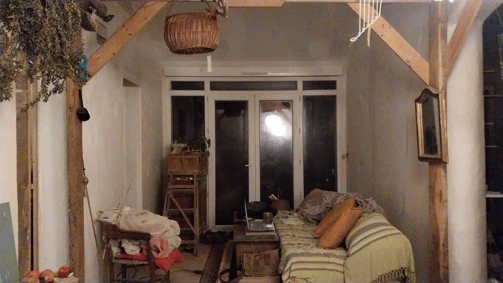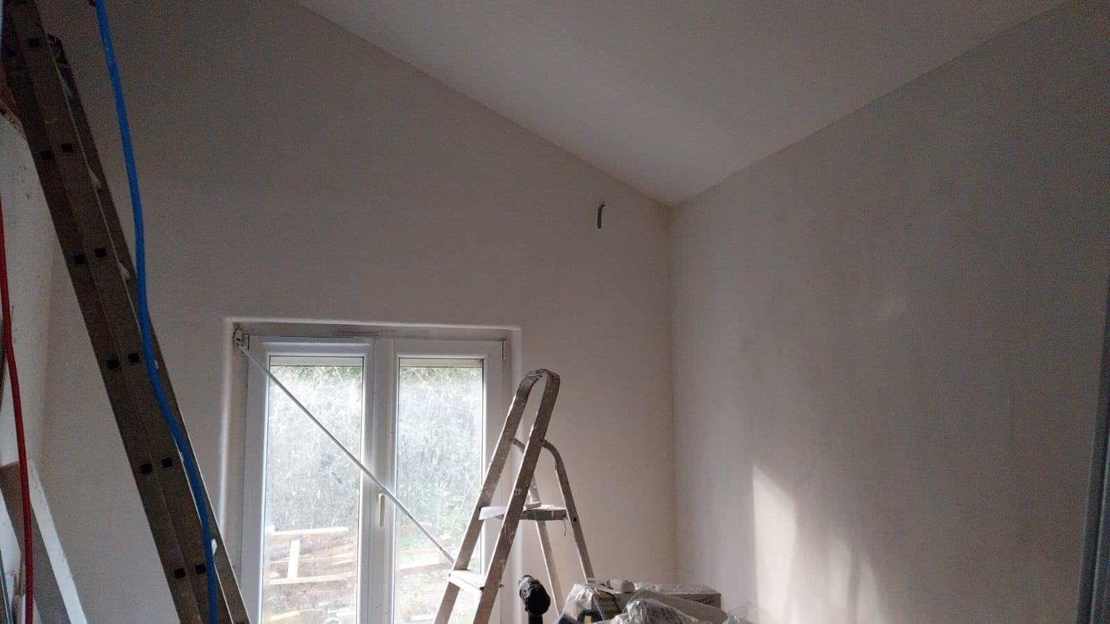Ensuite c’est parti pour la pièce principale ! Bandes de plâtre, etc…